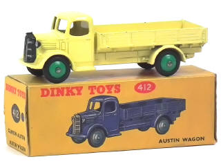 DINKY TOYS (GB) 412 AUSTIN Camion-plateau à ridelles jaune citron, jantes vert vif