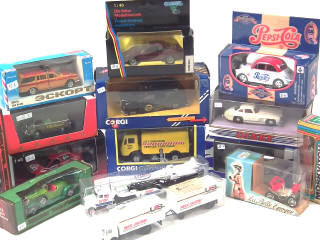 différentes échelles - on y retrouve notamment les marques : CORGI TOYS, AUTOART, DINKY MATCHBOX, GIOCHER, BEST BOX, SCHABAK, MAJORETTE, SOLIDO & BRUMM - possibilité de petits manques - quelques boîtes en état 'c'