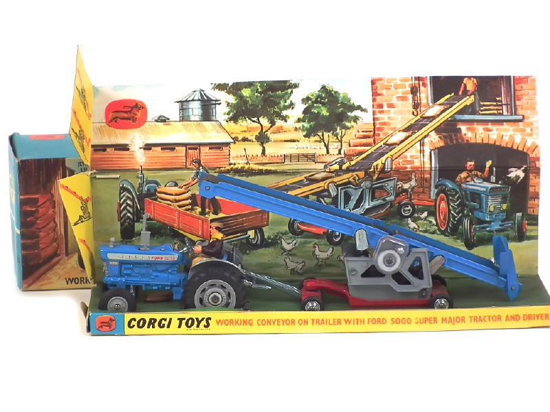 CORGI TOYS (GB) GS47 Coffret FORD 5000 SUPER MAJOR avec tapis roulant sur remorque bleu, gris & rouge
