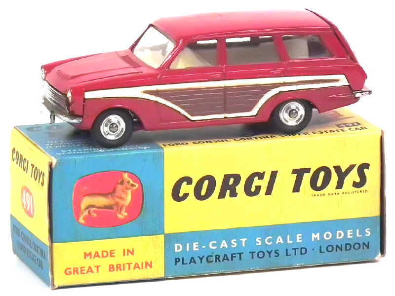 CORGI TOYS (GB) 491 FORD CONSUL CORTINA Break grenat & woody