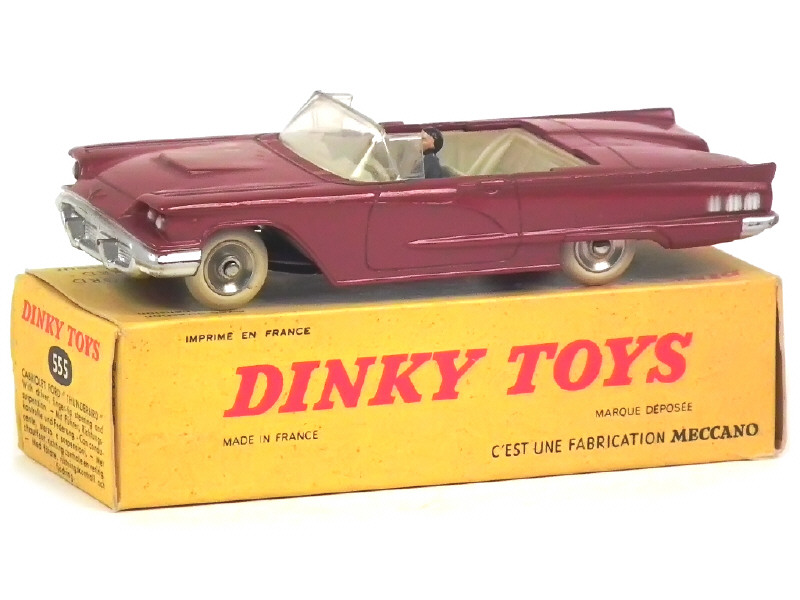 DINKY TOYS (FRANCE) 555 FORD THUNDERBIRD Cabriolet grenat, intérieur bleu ciel