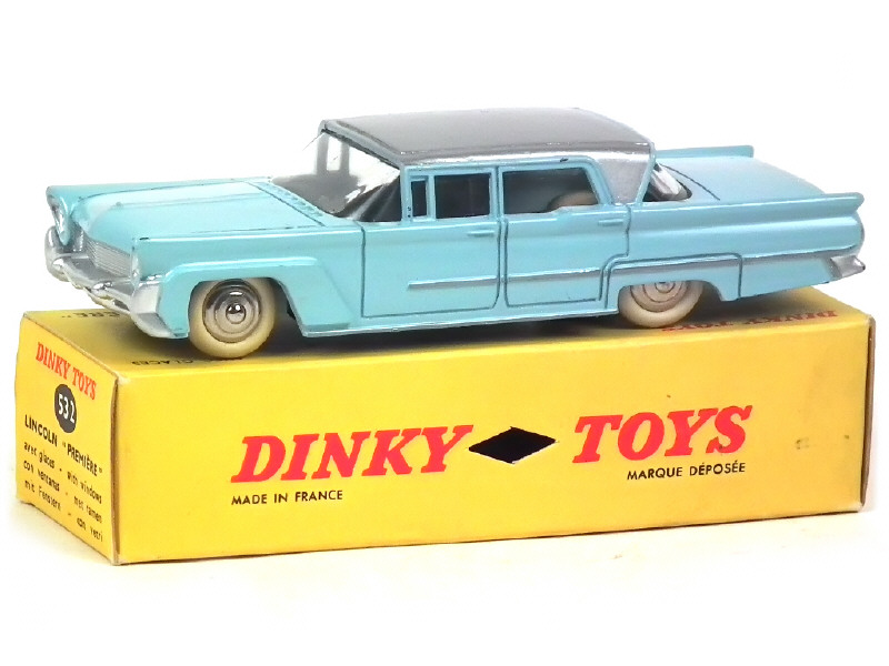 DINKY TOYS (FRANCE) 532 LINCOLN PREMIERE (version avec jantes convexes) bleu ciel, toit gris métal