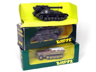 miniatures reproduisant les modèles : HANOMAG half track, SAVIEM VAB 4x4 & char M41 GORILLA