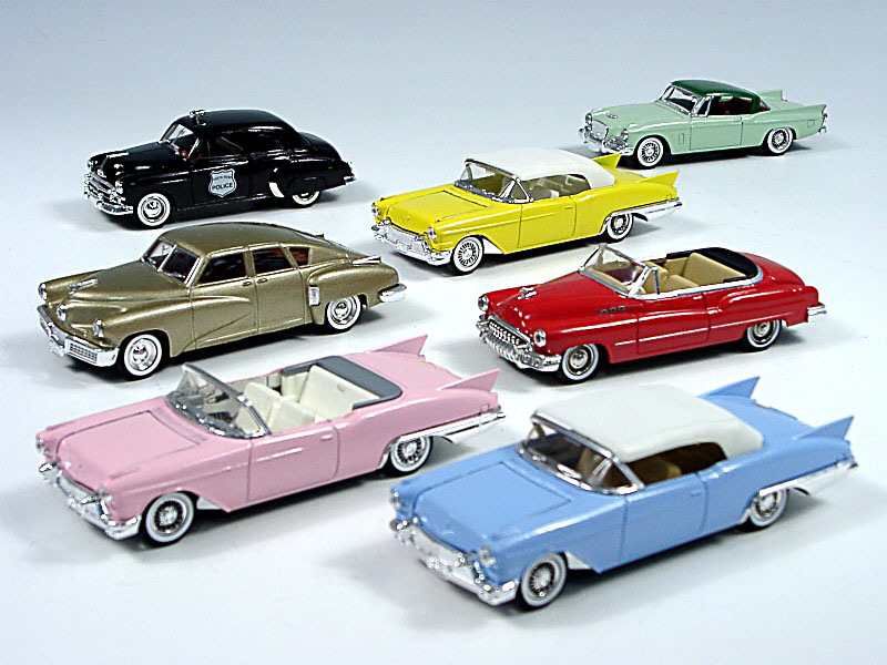 miniatures reproduisant les marques : TUCKER, BUICK, CADILLAC , STUDEBAKER & CHEVROLET - un modèle en état 'C'
