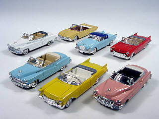 miniatures reproduisant les marques : FORD, CADILLAC, STUDEBAKER & BUICK