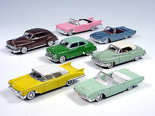 miniatures reproduisant les marques : FORD, CADILLAC, BUICK, CHEVROLET & CHRYSLER - manque capote sur l'un des modèles
