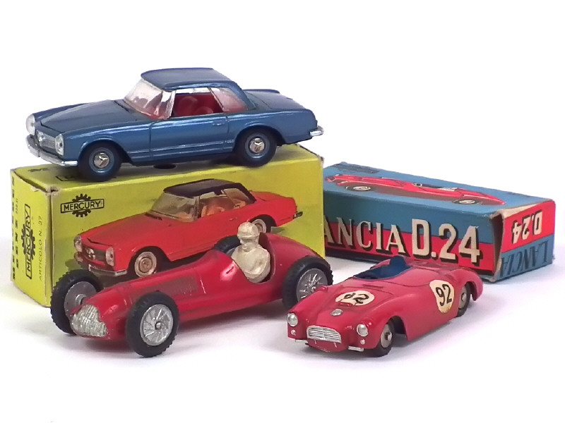 comprend : LANCIA D.24 (un décalque incomplet avec boîte en état 'b'), ALFA ROMEO (sans boîte) & MERCEDES BENZ 230 SL - détails de peinture argentée ajoutés