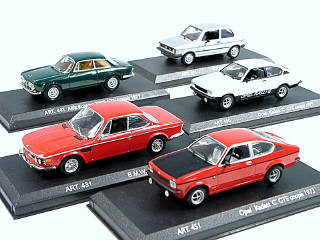 miniatures reproduisant les marques : OPEL, ALFA ROMEO, VOLKSWAGEN & BMW - avec 5 suremballages en carton
