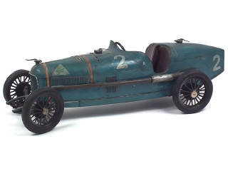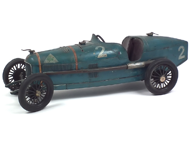 longueur 52 cm - avec moteur à clef (fonctionne) & direction par le volant - importantes parties repeintes avec éléments non d'origine (restaurations), cassés & d'autres manquants - pneus séchés, craquelés & plus ou moins endommagés - CERTAINEMENT L'UNE DES PLUS BELLES REALISATIONS DE C.I.J. !