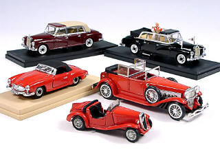 miniatures reproduisant les marques : FIAT, DUESENBERG & MERCEDES - on y retrouve les marques : RIO, DUGU & MERCURY - 3 modèles avec boîte