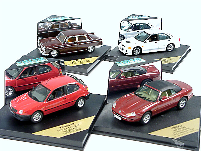 miniatures reproduisant les marques : PEUGEOT, MITSUBISHI, JAGUAR & TOYOTA
