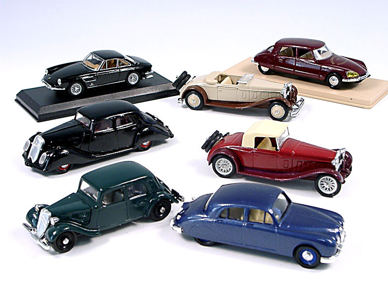 miniatures reproduisant les marques : CITROËN, JAGUAR, FERRARI, DELAGE & PANHARD - un modèle avec une jante à rayons cassée - 2 modèles en boîte - un modèle de marque 'BEST MODEL'