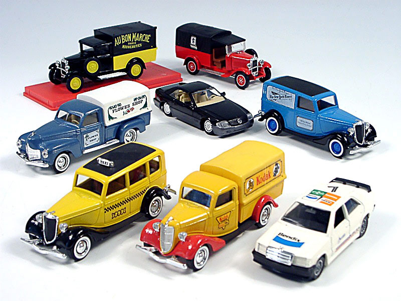miniatures reproduisant les marques : CITROËN, MERCEDES, FORD & DODGE - un modèle de marque VEREM avec boîte & planche de décalques - un autre modèle avec boîte
