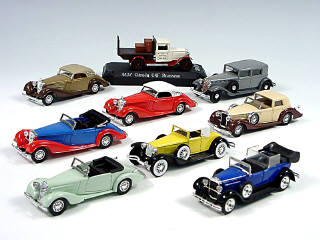miniatures reproduisant les marques : CITROËN, RENAULT, FIAT, DELAGE, TALBOT, CORD & MERCEDES - 3 modèles avec boîte - un modèle avec un feu arrière cassé & 2 autres avec sigle de calandre cassé