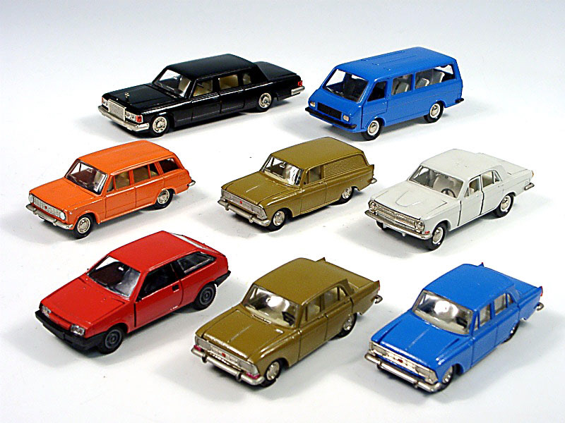 miniatures reproduisant des marques de voitures soviètiques - 3 modèles avec défauts de peinture d'origine & pneus craquelés