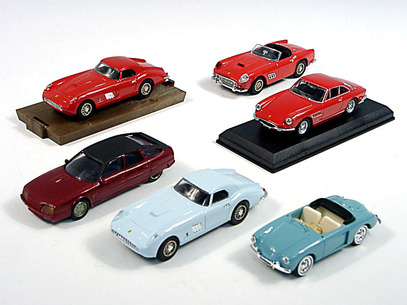 miniatures reproduisant les marques : FERRARI, BRISSONNEAU & CITROËN - un modèle avec pare-brise manquant & un autre avec un phare manquant & métal fatigue sur la carrosserie - on y retrouve les marques : MODEL BEST, HECO MODELES, C.E.C & IDEA3 - 2 modèles avec boîte