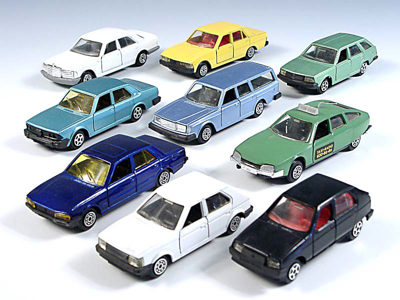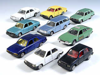 miniatures reproduisant les marques : MERCEDES, PEUGEOT, RENAULT, ALFA ROMEO, VOLVO, CITROËN & TALBOT