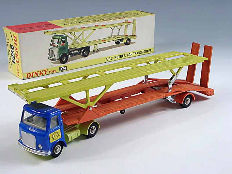 DINKY TOYS (GB) 974 A.E.C. Transporteur de voitures bleu métal, jaune & orange