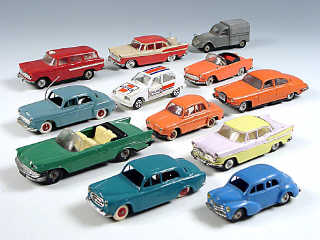 miniatures reproduisant les marques : RENAULT, PEUGEOT, CITROËN, JAGUAR, CHRYSLER & SIMCA - états de 'C' à 'F'