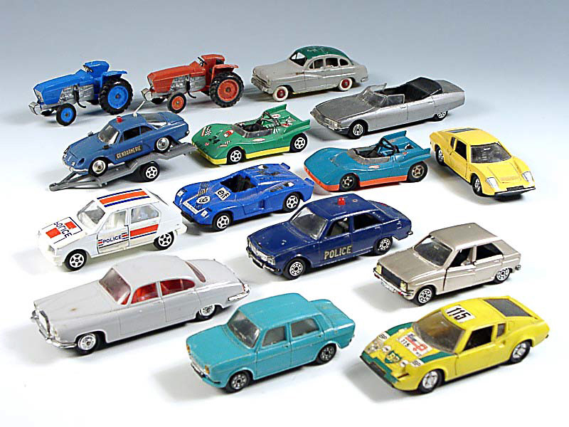 miniatures reproduisant les marques : RENAULT, ALPINE, PEUGEOT, FORD, SIMCA, JAGUAR & LIGIER - états de 'C' à 'F'