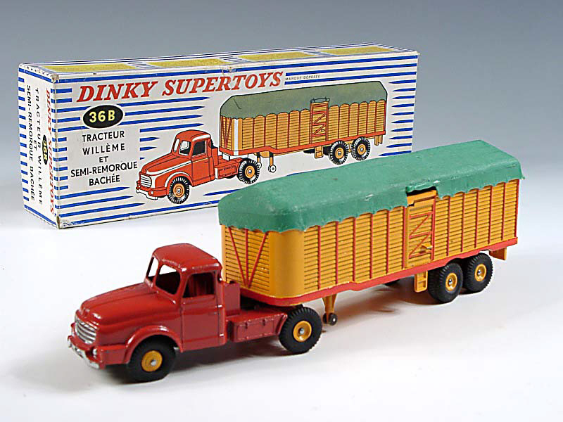 DINKY TOYS (FRANCE) 36B WILLEME Semi-remorque bâché (version avec jantes convexes) rouge & orange, bâche verte
