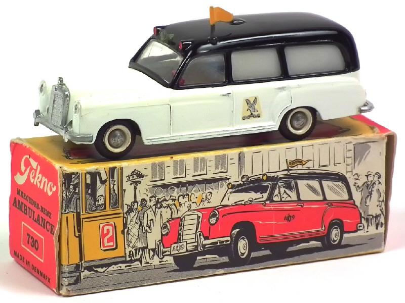 TEKNO (DANEMARK) 730 MERCEDES 220 S Ambulance 'FALCK' 1957 blanc & noir