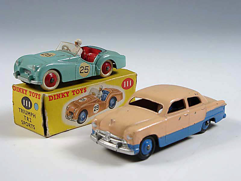 DINKY TOYS (GB) 111 TRIUMPH TR2 de compétition turquoise, intérieur & jantes rouges