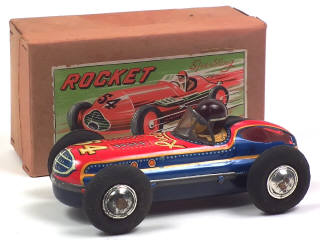 BANDAÏ (JAPON) Voiture de course ROCKET CAR en tôle lithographiée bleu & rouge