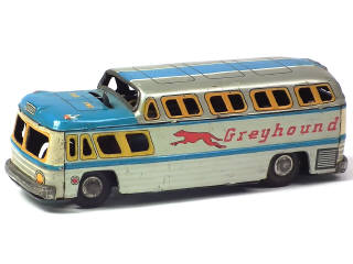 KKK (JAPON) Autocar 'GREYHOUND' en tôle lithographiée gris métal, bleu & jaune