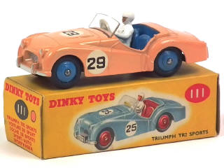 DINKY TOYS (GB) 111 TRIUMPH TR2 de compétition rose, intérieur & jantes bleus