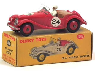 DINKY TOYS (GB) 108 MG MIDGET Sports rouge, intérieur brun, jantes rouges