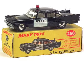 DINKY TOYS (GB) 258 DE SOTO FIREFLITE 'USA POLICE CAR' noir & blanc
