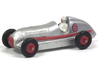 DINKY TOYS (FRANCE) 23C MERCEDES de course (version avec jantes rouges à pneus) argent & rouge, plancher argent