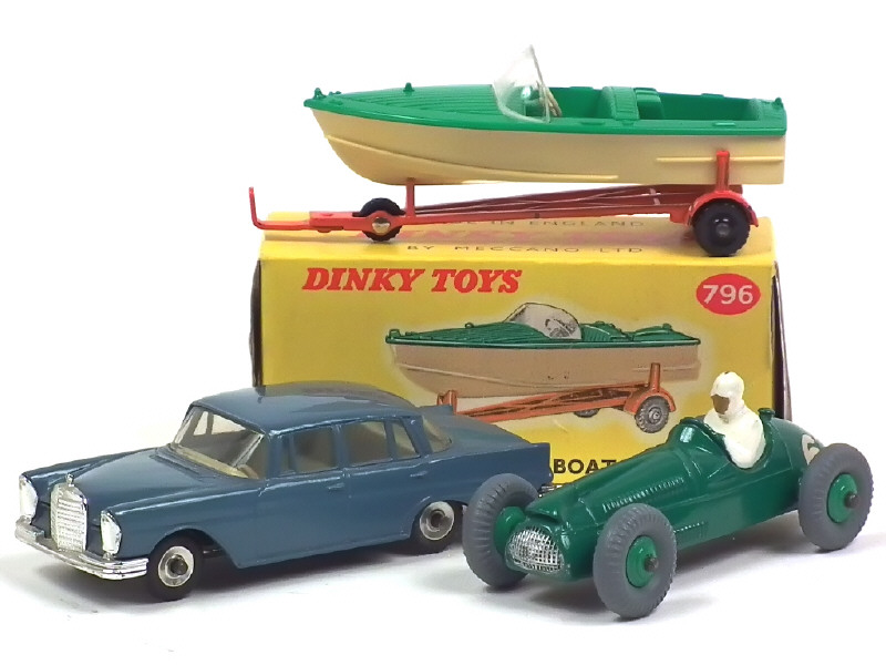 DINKY TOYS (GB) 796 HEALEY SPORTS BOAT avec remorque orange, crème & vert