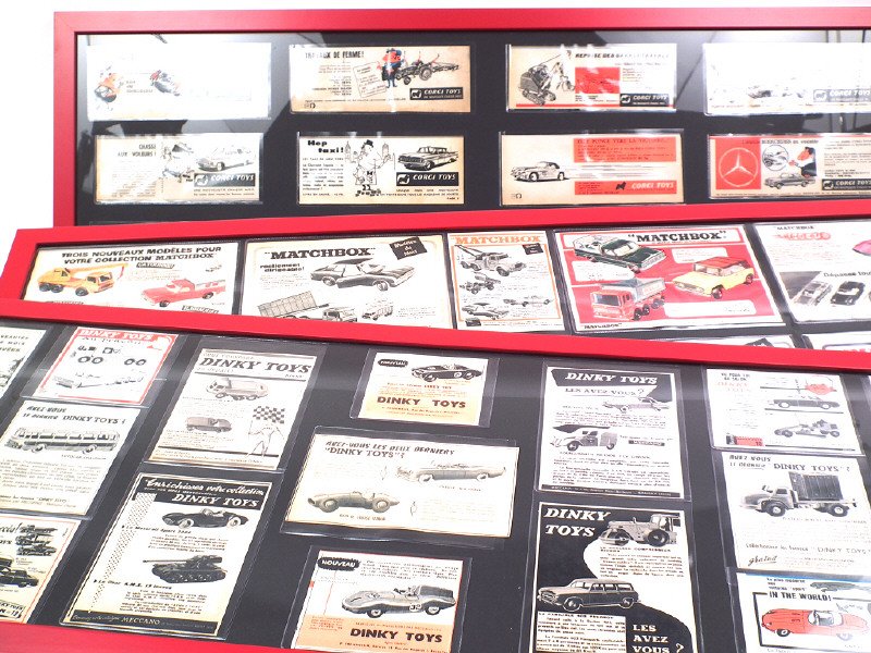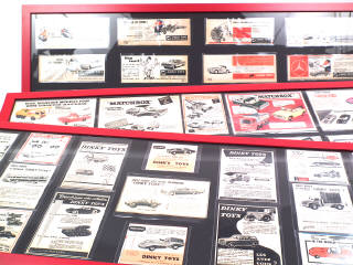 affichettes (découpées sur des magazines) sous-verre représentants différents modèles des marques CORGI TOYS, MATCHBOX & DINKY TOYS