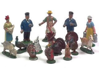 états de 'B' à 'D' - comprend notamment : 2 fermières (dont une repeinte), un fermier, 2 conducteurs, un garçonnet, un paon, 4 dindons & 2 lapins - éclats majeurs sur quelques exemplaires