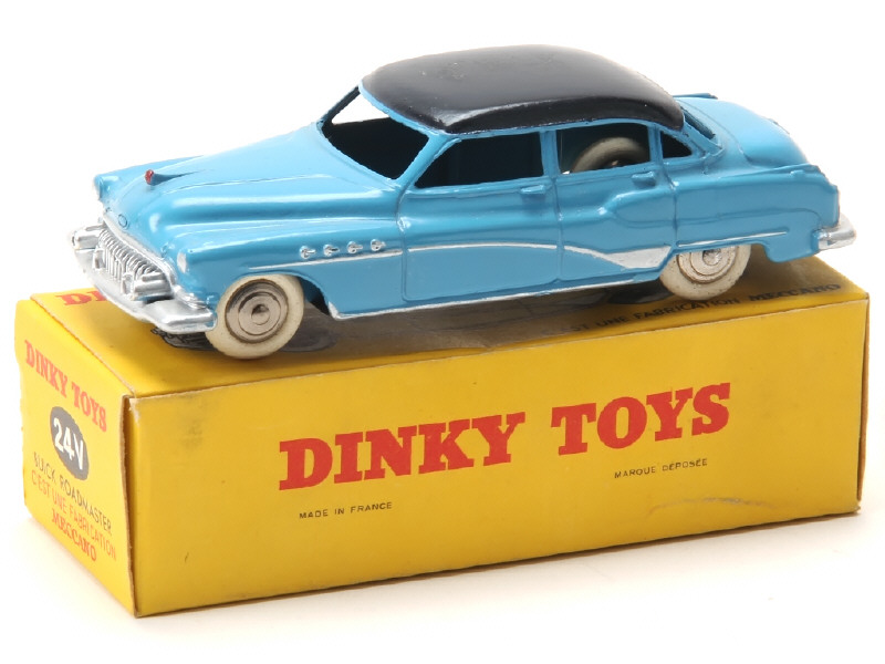 DINKY TOYS (FRANCE) 24V BUICK ROADMASTER (version avec intérieur de toit quadrillé & jantes chromées) 2 tons de bleu