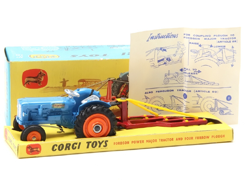 CORGI TOYS (GB) GS18 FORDSON POWER MAJOR Tracteur agricole avec charrue bleu & orange