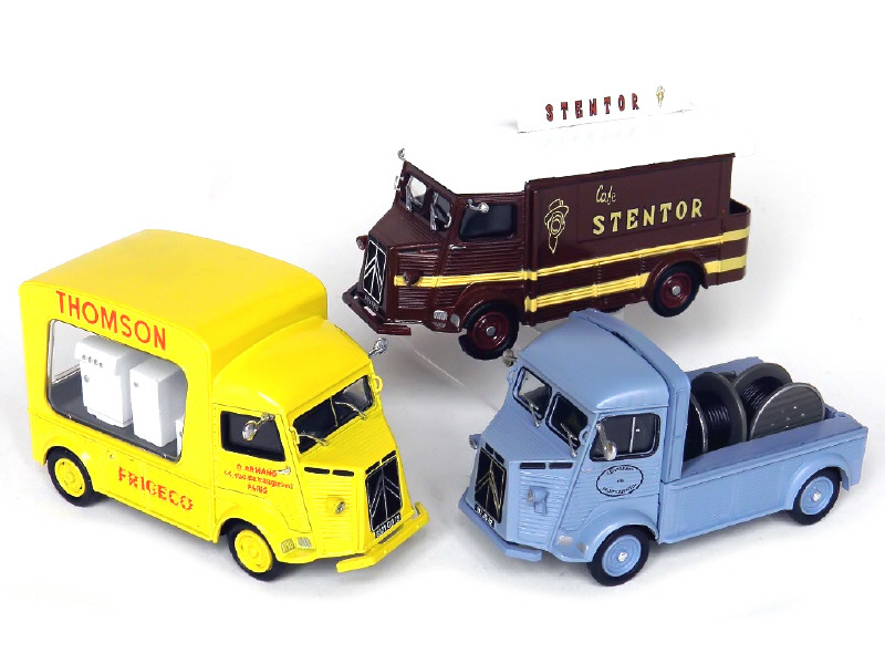 comprend : fourgon aménagé 'CAFE STENTOR', fourgon d'exposition 'THOMSON' (manque un phare) & pick-up 'EDF' (avec chargement de bobines)