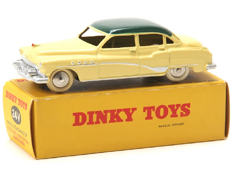 DINKY TOYS (FRANCE) 24V BUICK ROADMASTER (version avec intérieur de toit quadrillé & jantes chromées) jaune paille, toit vert