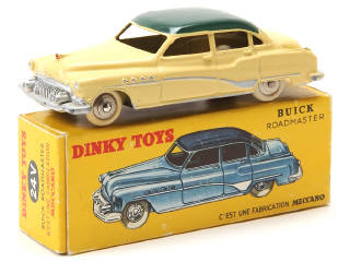 DINKY TOYS (FRANCE) 24V BUICK ROADMASTER (version avec intérieur de toit quadrillé & jantes chromées) jaune paille, toit vert