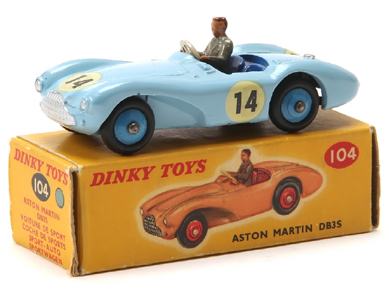 DINKY TOYS (GB) 104 ASTON MARTIN DB 3 Touring bleu ciel, intérieur bleu navy, jantes bleu vif