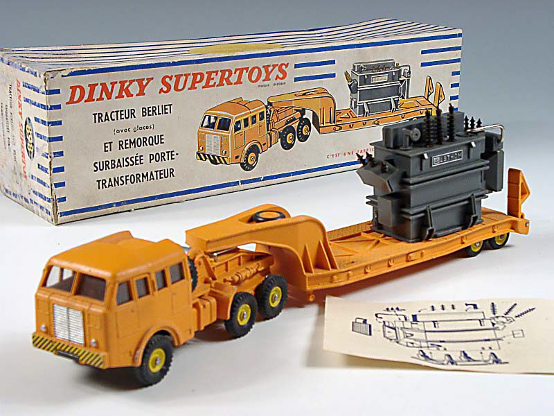DINKY TOYS (FRANCE) 898 BERLIET Semi-remorque plateau porte-transformateur (version avec jantes de remorque concaves) orange