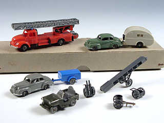 WIKING 'HO' (ALLEMAGNE) Ensemble de 3 voitures, un camion de pompier, une caravanne & divers