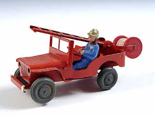 POLICHINELLE (FRANCE) JEEP WILLYS Pompiers avec échelle & dérouleur rouge