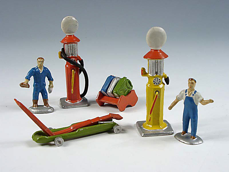 comprend : 2 personnages, 2 pompes à essence type colonne, un cric élévateur & 3 jerricans sur leur support