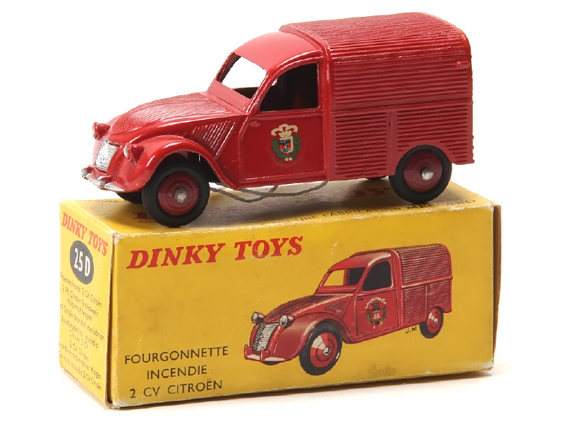 DINKY TOYS (FRANCE) 25D CITROËN 2CV Fourgonnette de pompiers rouge, jantes convexes bordeaux