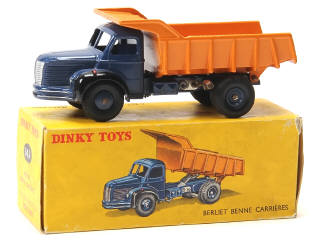 DINKY TOYS (FRANCE) 34A BERLIET Benne carrière MARREL (version avec jantes convexes) bleu foncé & orange