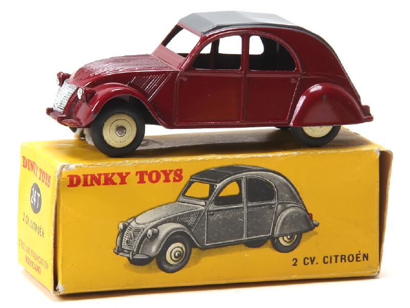 DINKY TOYS (FRANCE) 24T CITROËN 2CV (version avec 3 feux arrière) grenat, jantes crème & capote gris mat