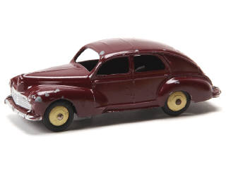 DINKY TOYS (FRANCE) 24R PEUGEOT 203 Petite lunette arrière (version avec intérieur de toit lisse & feu de stop) chocolat, jantes crème